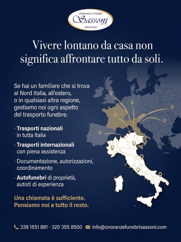 Ogni trasporto viene effettuato garantendo continuità assistenziale alla famiglia, dalla partenza fino all'arrivo nel luogo di sepoltura o cremazione scelto. Per un preventivo o per informazioni specifiche sul paese di destinazione, contattaci direttamente. 📞 0874 873112 | 339 1551 881 | 320 355 8500